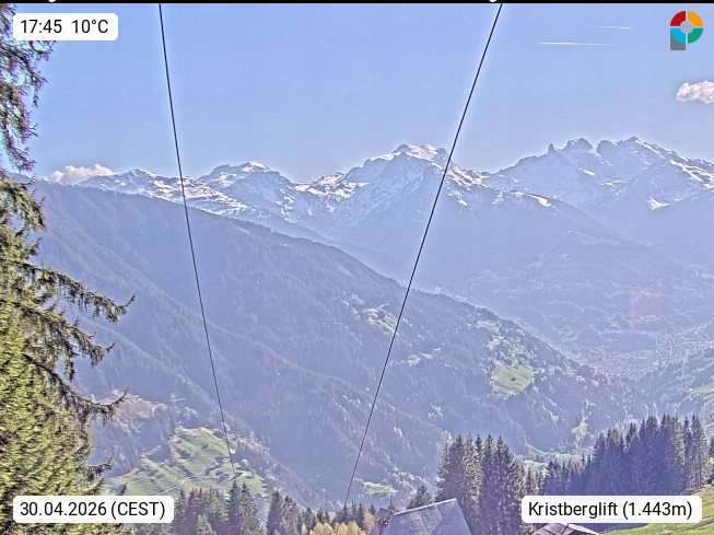 A 6780 Silbertal Kristberg, located in a side valley of Montafon in the Verwall Alps in district Bludenz. View from the mountain station of Kristberglift 1.443m in west direction over the ski piste of the family skiing region on Kristberg. Deine Erholungsinfos gibt es auf http://www.montafon.at/kristberg/de