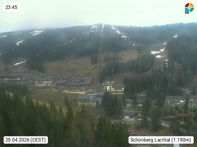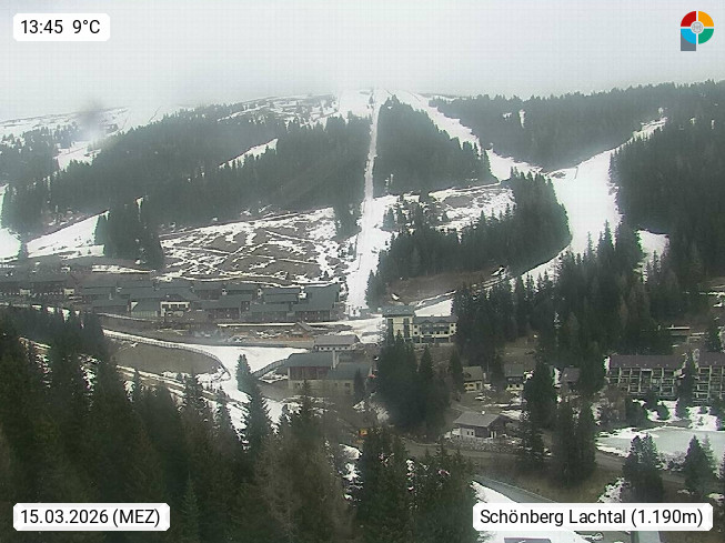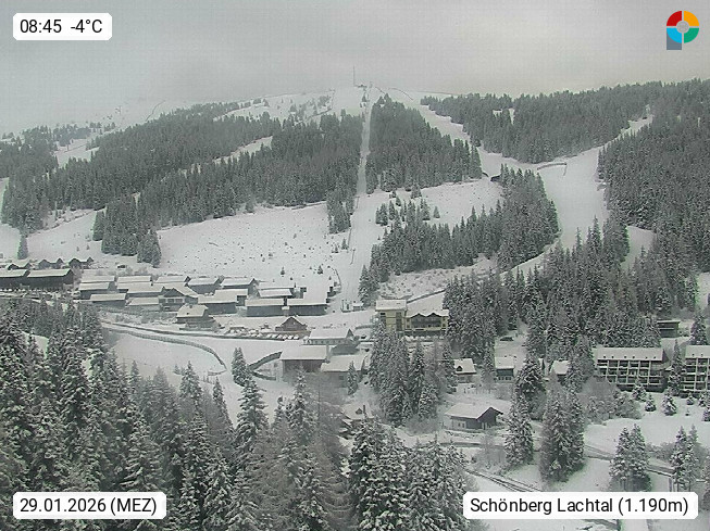 A 8831 Schönberg Lachtal 1.035m at the mountain Woelzer Tauern in district Murau. View from Lachtalhouse 1.600m over the Kinder Lachtal in east direction to the Lachtal chairlift for 6 persons. In the background on the right side you can see the Schönberglift. 1.940m and left side of the Tanzstattlift 1950m. Presented by https://www.lachtal.at/.