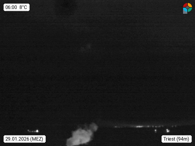 I 34121 Trieste, (slov. Trst) 8m, port city on the Adriatic Sea on the border with Slovenia and the capital of the autonomous region Friuli Venezia Giulia and the province of Trieste. Panoramic view northwest over Trieste. Presented by https://www.radiopuntozero.it/.