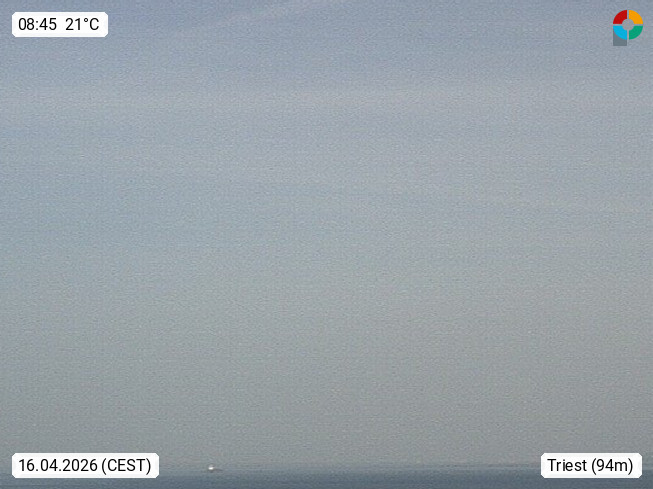 I 34121 Trieste, (slov. Trst) 8m, port city on the Adriatic Sea on the border with Slovenia and the capital of the autonomous region Friuli Venezia Giulia and the province of Trieste. Panoramic view northwest over Trieste. Presented by https://www.radiopuntozero.it/.