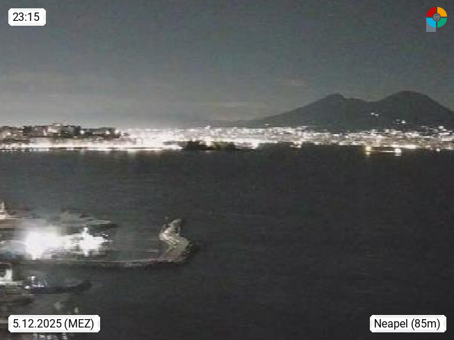 I 80100 Naples (Napoli) 21m, capital of the Campania Region and the Province of Naples on the northern edge of the Gulf of Naples. Panoramic view towards the south of the city and the Bay of Naples to Vesuvius 1.281m, the only active volcano on the European mainland. Presented by https://www.campanialive.it.