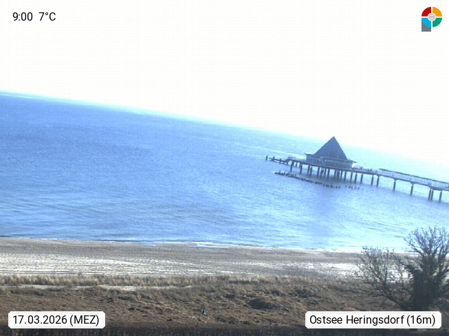 D 17424 Heringsdorf 7m, municipality and a seaside resort in Mecklenburg EasternPomerania. View from the beachhotel in east direction over the rosegarden to SeebrĂĽcke in the Pommeranian Bay. Presented by https://www.strandhotel-ostseeblick.de/.