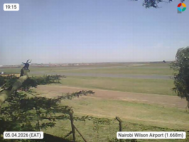 Nairobi 1.650m, capital of Kenya on Athi River, just south of the equator. View from Wilson International Airport which is located south of the city of Nairobi to the east. Presented by http://webcams.aeroclubea.com/.