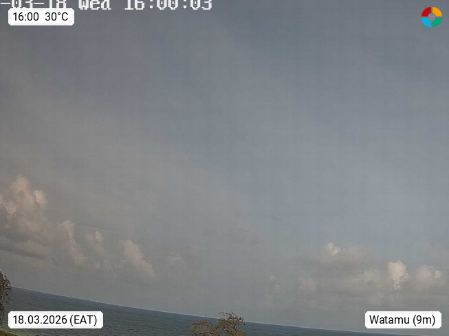 Watamu, village at the Turtle Bay on the Indian Ocean south of the town of Malindi in the province Coast.View along the beach to the south. Presented by https://webcams.aeroclubea.com/.