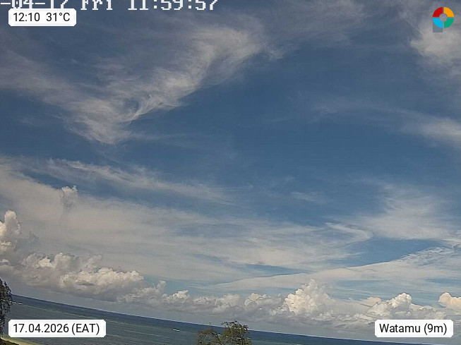 Watamu, village at the Turtle Bay on the Indian Ocean south of the town of Malindi in the province Coast.View along the beach to the south. Presented by https://webcams.aeroclubea.com/.