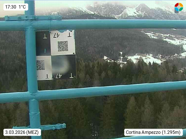 I 32043 Cortina Ampezzo 1.211m, in the Dolomiti Alps in the province Belluno at the border to South Tyrol. Cortina hosted the Olympic Winter Games 1956. Panoramic view over the town in the north to the Dolomites. Presented by https://www.montagnaitalia.it.
