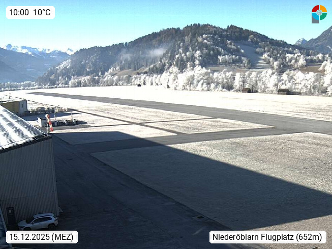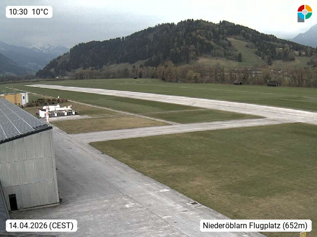 A 8960 Niederoeblarn 679m, in the upper Ennstal in district Liezen. View from the roof of the company building of the Union Sports Club Niederöblarn west to the airport of the Alps flight school with advance and runway. Presented by https://www.sportsarea.at/.