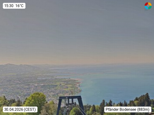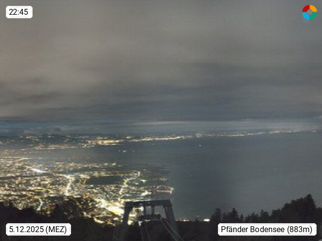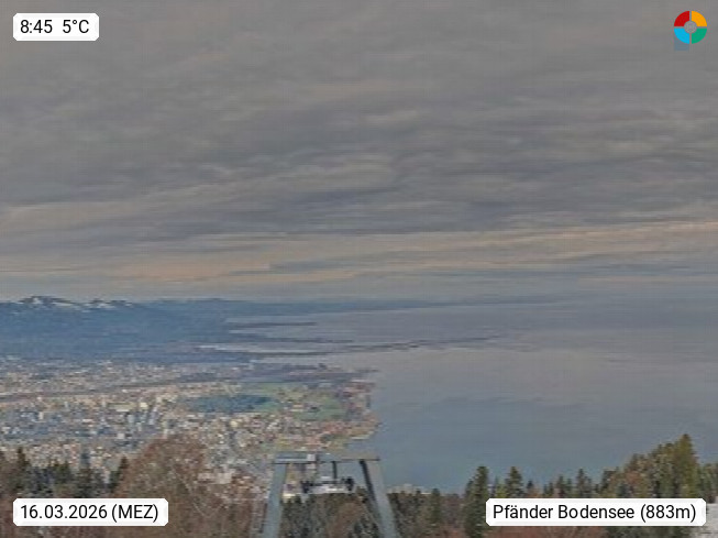 6900 Bregenz 427m, capital of Vorarlberg, Bregenz, capital of the district Bregenz on the eastern shore of Lake Constance. Panoramic view from Pfänder 1.064 m, the local mountain of Bregenz in southwest direction across the Lake Constance.