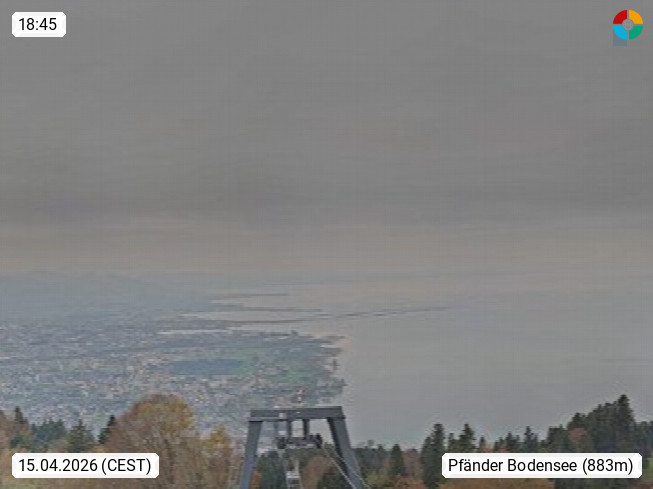 6900 Bregenz 427m, capital of Vorarlberg, Bregenz, capital of the district Bregenz on the eastern shore of Lake Constance. Panoramic view from Pfänder 1.064 m, the local mountain of Bregenz in southwest direction across the Lake Constance.
