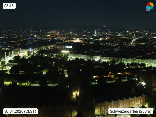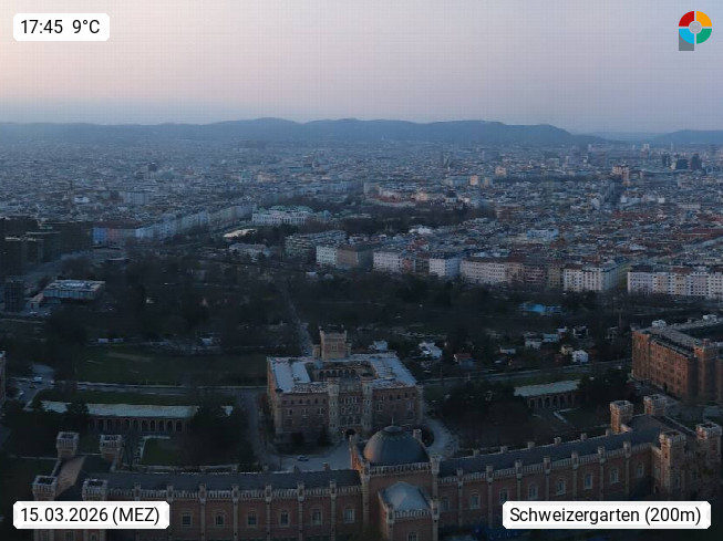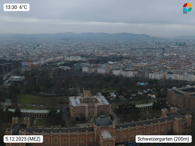 1030 Vienna 200 m, Capital of Austria and 1 of the 9 states of Austria in the northwestern area of the Vienna basin at the Danube. View over the grounds of the Asenal, a former military building complex, towards the northeast towards the Schweizergarten, an 11.5 hectare park with striking monuments in Vienna's 3rd district. Presented by https://a1.net.