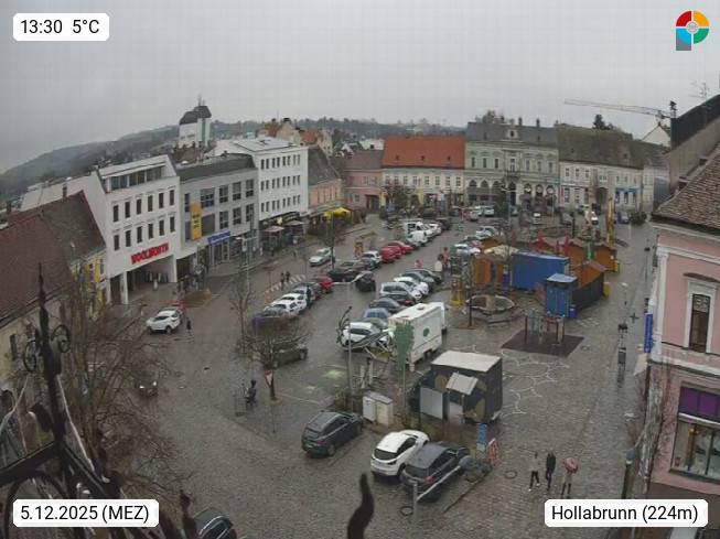 A 2020 Hollabrunn on Goellersbach 235m, District capital of the district of Hollabrunn in western wine district in Lower Austria. Looking northwest over the main square. Presented by https://www.hollabrunn.gv.at.