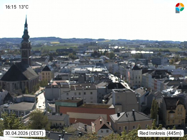 A 4910 Ried im Innkreis 435m, Capital of the district Ried in the Inn circular in the region Innviertel. View in direction west over the city of Ried. Presented by http://www.einkaufsstadtried.at.