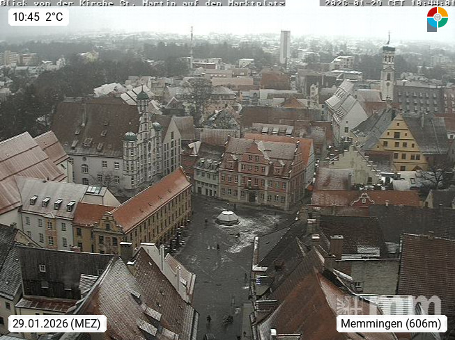 D 87700 Memmingen 602m, town in the region Donau at the river Iller bordering with Baden Württemberg. View of the town square. Presented by https://www.memmingen.de.