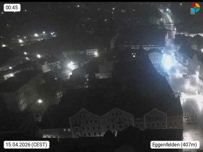 D 84307 Eggenfelden 416m, town in the Rott valley. View from the tower of the town church in southern direction over the town square. Presented by https://www.eggenfelden.de/de/.