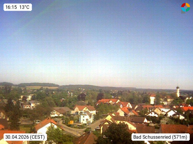 D 88427 Bad Schussenried 570m, mud healing bath and Upper Swabian spa town in the district Biberach. Looking southeast direction over Bad Schussenried. Presented by https://www.wetterwarte-sued.com.