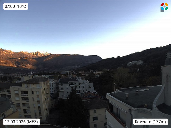 I 38068 Rovereto 175m, town in Trentino Val d'Adige on Leno, south of Trento. View of the Adige Valley southwest. From the A22 motorway, exit at Rovereto Sud, you drive to the nearby Lake Garda. Presented by https://www.meteorovereto.it.
