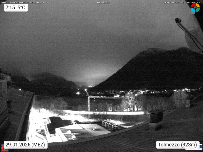 I 33028 Tolmezzo 323m, on Tagliamento river in Friuli and capital of the historic region of Carnia. Panoramic view over the Tagliamento, left the Mount Verzegnis, the valley of Tagliament with the village Ampezzo. In the foreground the city Caneva. Presented by https://www.meteo.fvg.it/.