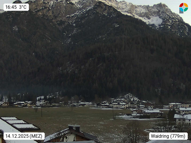 A 6384 Waidring 780m, at the beginning of Pillersee valley at the foot of the Lofer Steinberg mountains in the border triangle Tirol - Bavaria -Salzburg. Looking east over the place Waidring with the parish church of St. Vitus and Nicholas to the Lofer Steinberg mountains. Presented by https://www.tiroler-adler.at/.