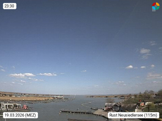 A 7071 Rust on Lake-Neusiedl 124m, hung. Ruszt, croat. Rusta and with about 1.900 inhabitants it is the smallest country and statutory city. Rust is known primarily as a city of storks and as a winegrowing community. View from the marina to the east of Lake Neusiedl. Presented by https://www.seebadrust.at/.