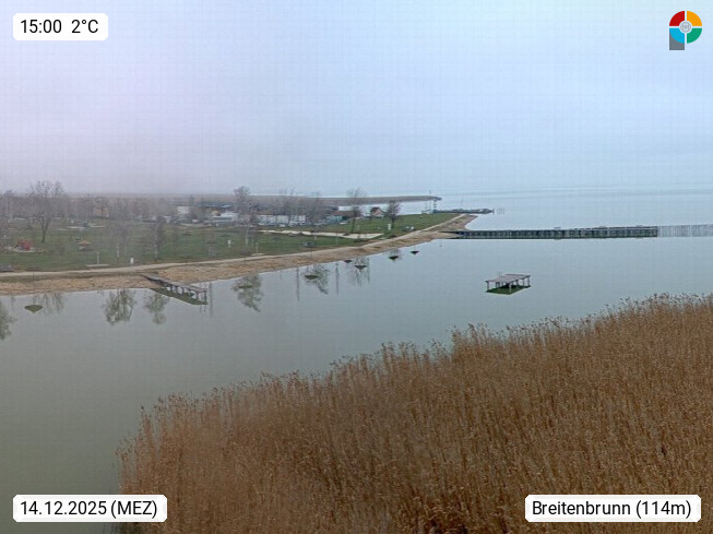 AT 7091 Breitenbrunn on Lake Neusiedl 140 m, market town with 25.75 km² in the district of Eisenstadt Surrounding. View towards northeast over the seaside resort on Lake Neusiedl. Presented by https://www.neuerstrand.at.