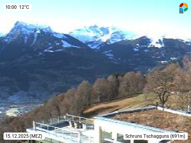 A 6780 Schruns Tschagguns 700m, Panoramic view of Bartholomäberg to south direction over Schruns, the capital of the Montafon. In the background, the skiing at Golm 700 - 2.124m at the foot of the Golm yoke 2.100m. Presented by https://www.fernblick-montafon.at/de/.