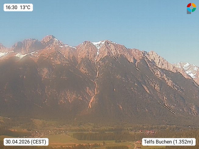 A 6410 Telfs Buchen, on Seefeld High Plateau, markettown in district Innsbruck Country. Panoramic view from district Buchen on 1.300m to south direction over Oberinntal to the Ötztal Alps. Presented by https://www.interalpen.com.