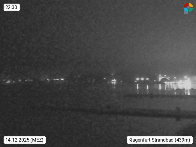 A 9020 Klagenfurt at Woerthersee 445m, capital of the state Carinthia at the eastern shore of Lake Woerthersee in the Klagenfurt basin. View from the beach of Klagenfurt, the largest inland lido in Europe, which has been opened in 1924. View in north direction to the jetties and the beach. Presented by https://www.klagenfurt.at:443/.