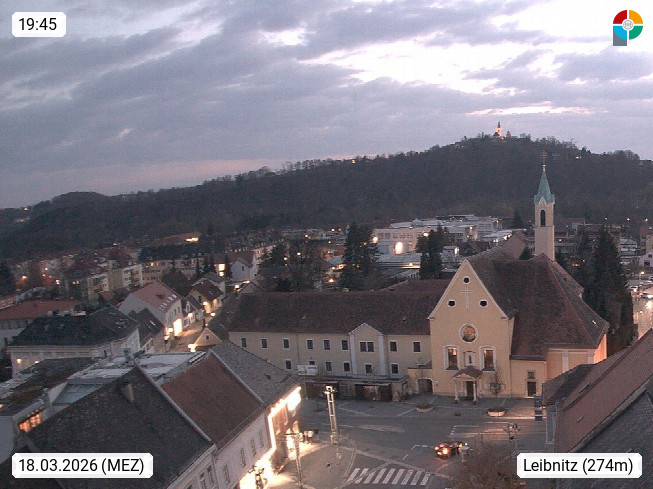 A 8430 Leibnitz 275m, capital in Southern Styria, between the rivers Mur and Sulm in Leibnitzer Feld. View from the tower of the town hall on the main square to the west. Presented by https://leibnitz.info/de.