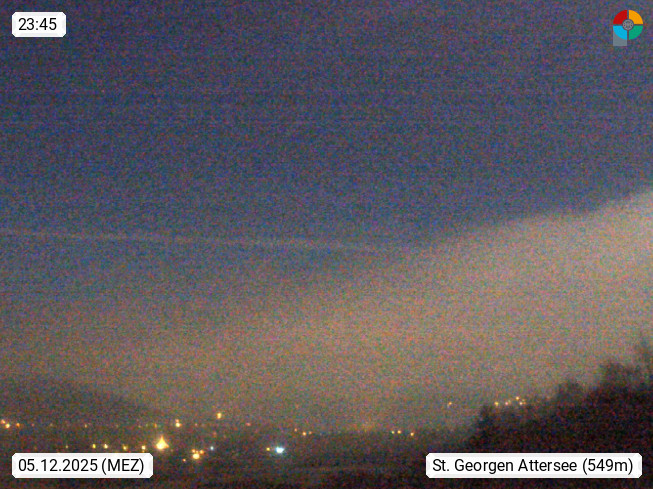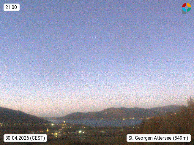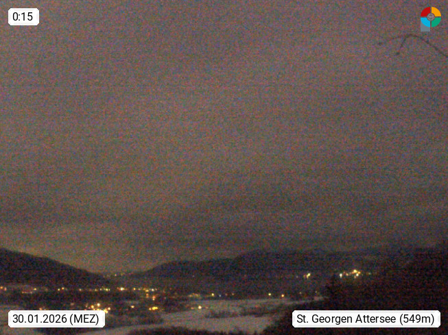 A 4880 Sankt Georgen at Attergau 540m, market town in the district in Vöcklabruck Hausruckviertel. View from Kronberg northeast up to the Attersee. Presented by https://schilift-kronberg.jimdofree.com/.