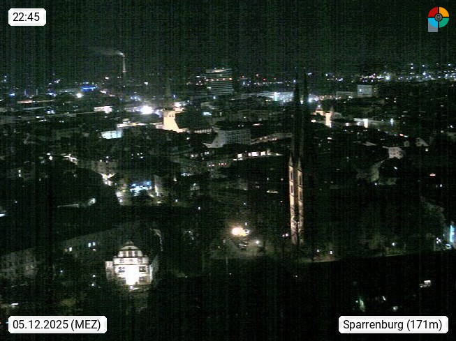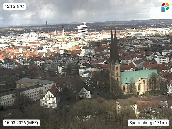 D 33609 Bielefeld Sparrenburg 182m, independent city in the administrative district Detmold in the northeast of the German state North Rhine Westphalia in the hilly landscape of the Ravensburger Mulde region.Panoramic view from fortress Sparenberg, a restored castle fortress and symbol of Bielefeld, north. Presented by https://bicos.de/.