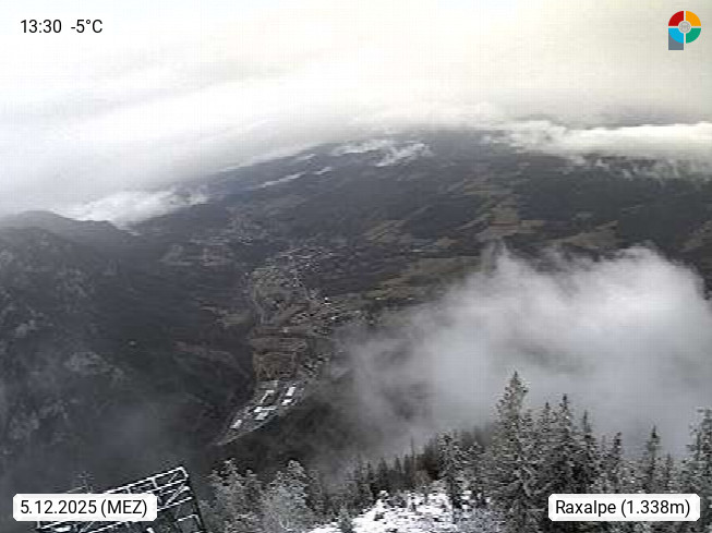 A 2651 Reichenau an der Rax, market town at the foot of the Rax in the district of Neunkirchen. View from the mountain station at Raxplateau 1.546m in east direction. Presented by https://www.raxalpe.com.