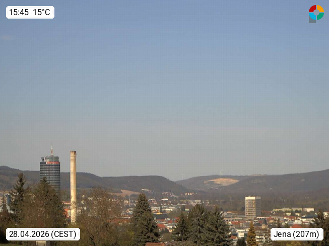 D 07745 Jena 143m, university city and county city in Thuringia and known by Carl Zeiss Company. Panoramic view from the Max Planck Institute, in northeast direction to the city center. Presented by https://www.bgc-jena.mpg.de/wetter/.
