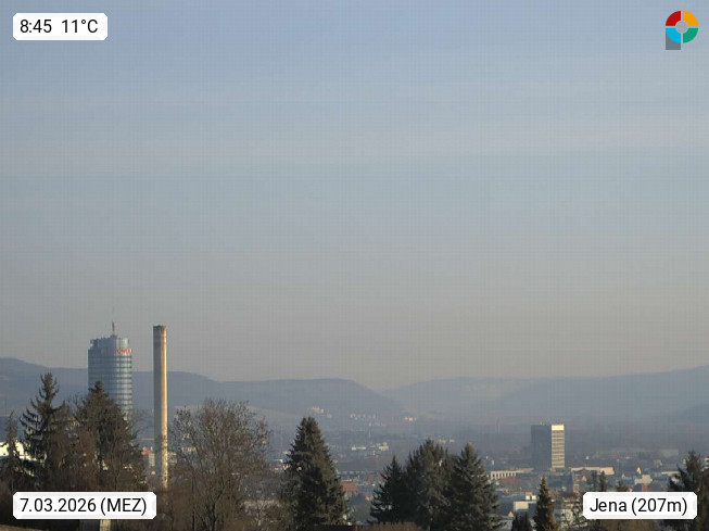 D 07745 Jena 143m, university city and county city in Thuringia and known by Carl Zeiss Company. Panoramic view from the Max Planck Institute, in northeast direction to the city center. Presented by https://www.bgc-jena.mpg.de/wetter/.