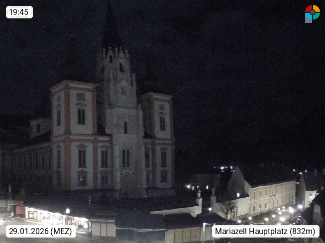 A 8630 Mariazell 868m, Austrias most important place of pilgrimage, which is located in the northern Upper Styria region in district Bruck at Mur. Overlooking the main square in front of the basilica. Presented by https://www.mariazell.at/.