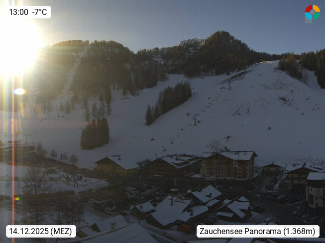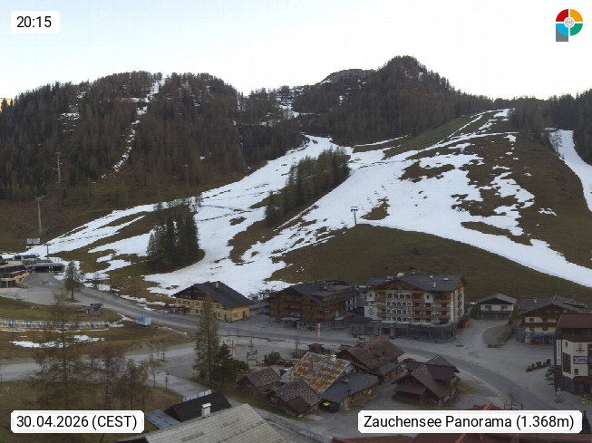 5541 Zauchensee 1.368 m, Mountain village in the municipality of Altenmarkt im Pongau. Panoramic view in west direction across the village Zauchensee. On the left side Gamskogel 2.188 m and on the right Rosskopf 1.930 m. Presented by https://www.zauchensee.com.
