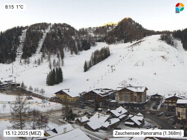 5541 Zauchensee 1.368 m, Mountain village in the municipality of Altenmarkt im Pongau. Panoramic view in west direction across the village Zauchensee. On the left side Gamskogel 2.188 m and on the right Rosskopf 1.930 m. Presented by https://www.zauchensee.com.