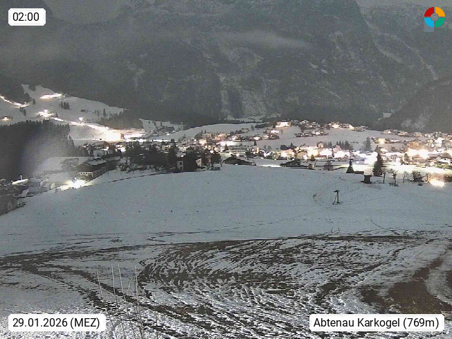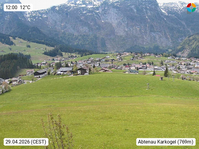 Abtenau 720m, Market town in the valley Lammertal about 45 km south of the city Salzburg. View towards southwest over the place Abtenau to Karkogel 1.200m the experience mountain in Abtenau. Presented by https://www.abtenau-info.at/.