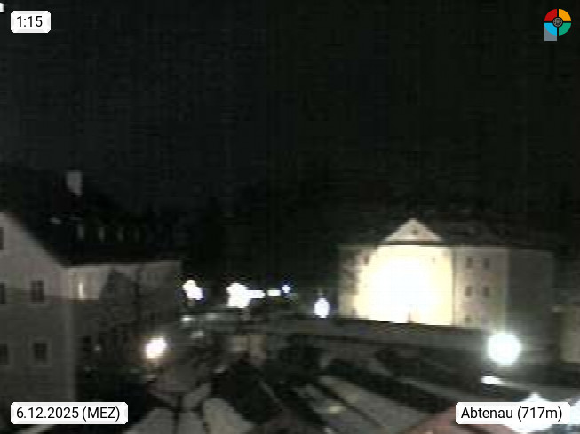 5441 Abtenau 715m, Market town in the valley Lammertal about 45 km south of the city Salzburg. View in southwest direction over the market square, in the background the mountain Tennengebirge. Presented by https://goldenerstern.at/.