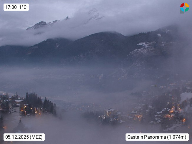 Bad Gastein 1.002m, spa and ski resort in Gastein valley at the foot of the Graukogel. Panoramic view from the Village Center to direction northeast. Presented by https://www.gasteinertal.com/.