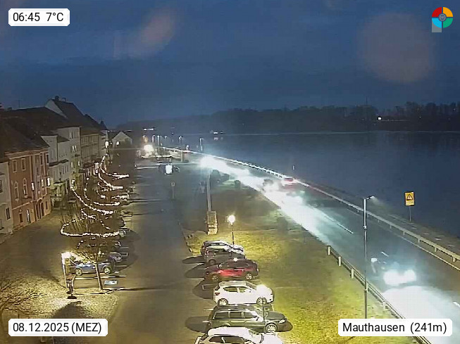 4310 Mauthausen 243m, Blick auf den historischen Leopold Heindlkai an der Donau, an dem auch der Donauradweg vorbei führt. Die historischen Bürgerhäuser tragen zum besonderen Flair des Jahrhunderte alten Donaumarktes Mauthausen bei. Presented by https://www.mauthausen.info/.