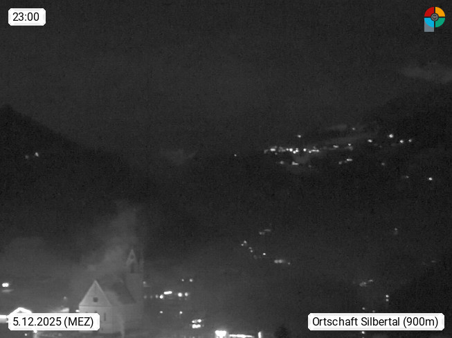 A 6782 Silbertal 900m, Bergdorf und ehemaliger Bergbauort (Kupfer und Silber) an der Litz in der Region Montafon im Bezirk Bludenz. Blick Richtung Westen, im Hintergrund die Zimba 2.643m. Presented by https://www.montafon.at/de/Mein-Montafon/Bergdoerfer/Silbertal.