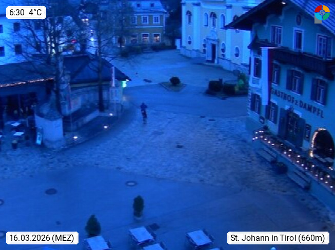 6380 St. Johann in Tirol is a market town with 9547 inhabitants in the Austrian county of Tirol in the district of KitzbĂĽhel. View of the main square in St. Johann at a height of 665 meters. Presented by https://www.ortswaerme.info/.