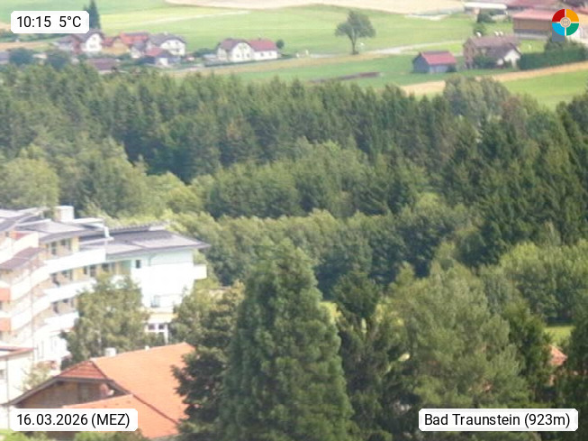 3632 Bad Traunstein 920m, market town in the Zwettl district in Lower Austria. View from the spa center to the Wachstein 958 m. The summit rock consists of several house-sized granite boulders. Presented by https://www.bad-traunstein.at/buergerservice/.