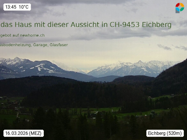 9453 Eichberg ist a community and a village in the valley of the Rhein in the Swiss Canton of St. Gallen in the eastern part of the country, belonging politically to the district of Rheintal. View of the Rhein valley and Austria. If the weather is good you can see the mountain of Schesplana afar in the middle right part. Presented by https://www.outdoor-community.eu.