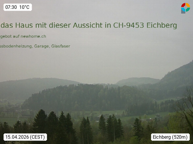 9453 Eichberg ist a community and a village in the valley of the Rhein in the Swiss Canton of St. Gallen in the eastern part of the country, belonging politically to the district of Rheintal. View of the Rhein valley and Austria. If the weather is good you can see the mountain of Schesplana afar in the middle right part. Presented by https://www.outdoor-community.eu.