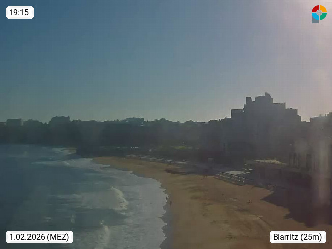 64200 Biarritz (basque Miarritze) is a french community in the department of Pyrenees-Atlantiques in the region fo Nouvelle-Aquitaine. View of the beach. Presented by https://www.meteo-biarritz.com.