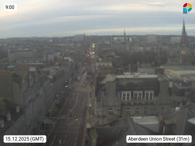 AB10–13 Aberdeen ist eine Stadt im Nordosten von Schottland im Vereinigten Königreich. Blick auf die Union Street. Presented by https://online.aberdeencity.gov.uk/.