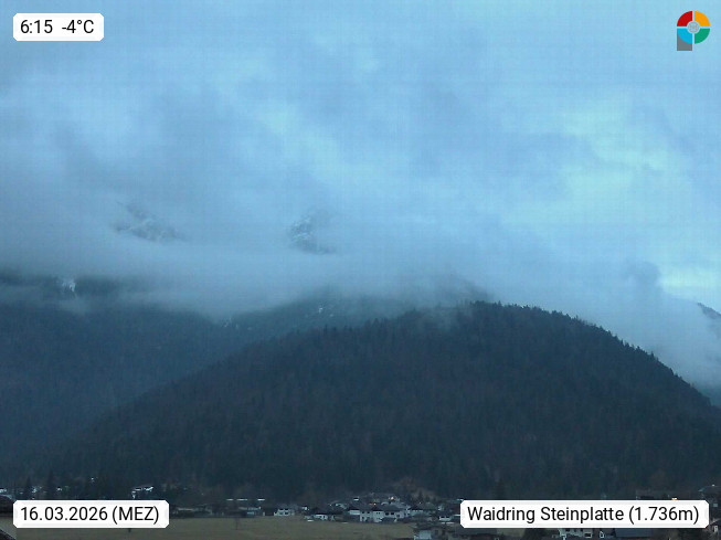 AT 6384 Waidring 780m, am Beginn des Pillersee Tal am Fuße der Loferer Steinberge im Dreiländereck Tirol - Bayern - Salzburg. Blick vom Ort Richtung Norden zur Steinplatte 1.869m in den Chiemgauer Alpen. An der Nordseite befindet sich das Familienskigebiet Steinplatte - Winklmoosalm welches von Waidring mit einer Godelbahn erschlossen ist. Presented by https://www.tiroler-adler.at/.