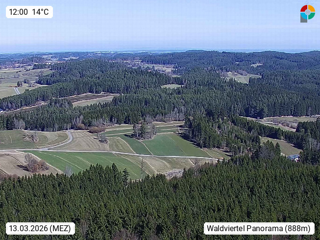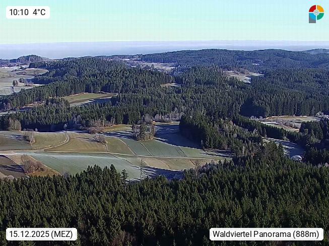 3920 Arbesbach 850m, Panorama über Teile des Waldviertels, im Mittelalter als "Viertel ober dem Manhartsberg" benannt und geografisch der nordwestliche Teil des österreichischen Bundeslandes Niederösterreich. Webcamservice von www.waldsoft.com. Presented by https://www.waldviertel.info.