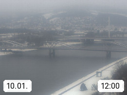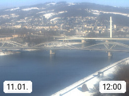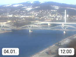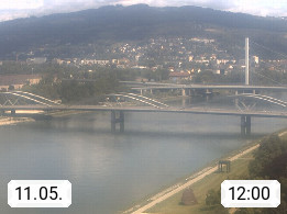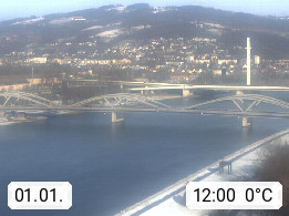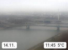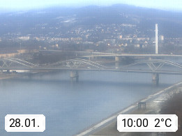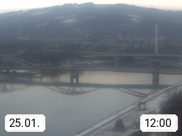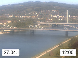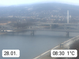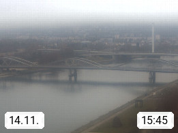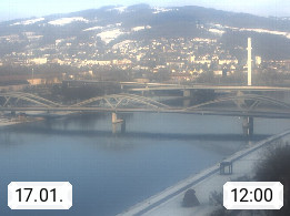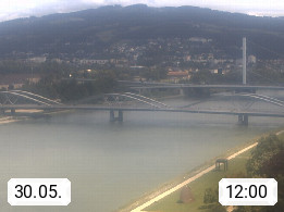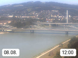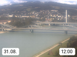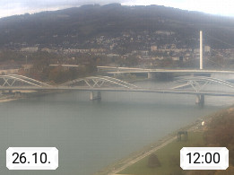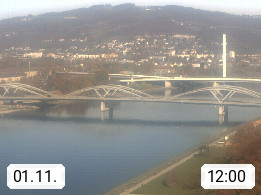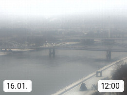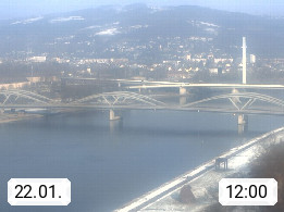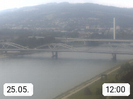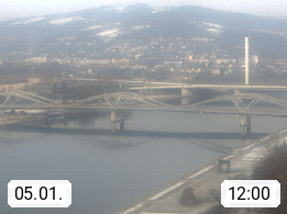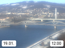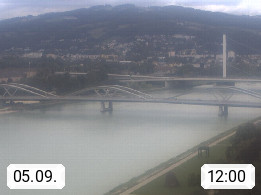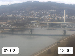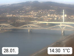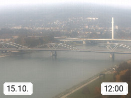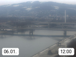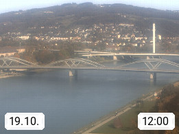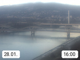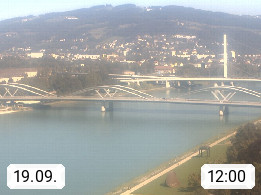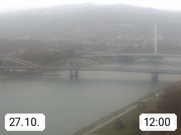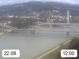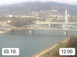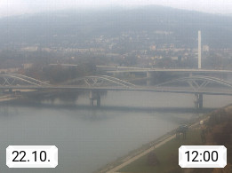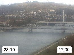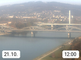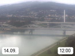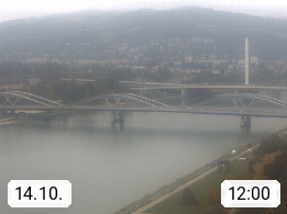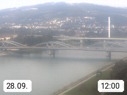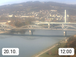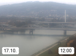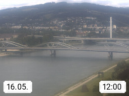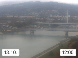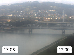 4020 Linz 266m, Landeshauptstadt von Oberösterreich an der Donau. Hier zu sehen sind die Abbrucharbeiten der Linzer Eisenbahnbrücke, mit dem im Juni 2016 begonnen wurde. Links im Bild die Manipulationsfläche, auf der die Brückenteile für den Weitertransport zerlegt werden. Im Hintergrund der Pfenningberg 616m. Presented by http://www.linznet.at.